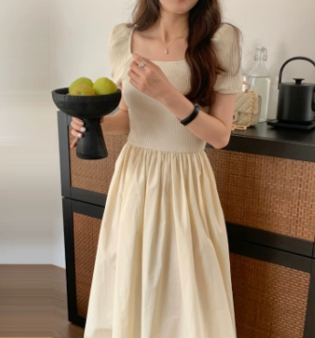 セットアップ スクエアネック リブニット フレアスカート ワンピース ミモレ丈 半袖 パフスリーブ フレア タイト 細身 ストレート Aライン スマート チュール ウエストマーク 薄手 かわいい 大人可愛い シンプル カジュアル 大人 おしゃれ レトロ 大人女子 こなれ感 ラフ ガーリー モード系 とろみ感 抜け感 無地 春 夏 秋 10代 20代 30代 レディース ママ お出かけ 公園デビュー 女子会 お泊まり アウトドア リゾート 旅行 海 プール 着回し 普段使い 楽ちん モテ 体系カバー