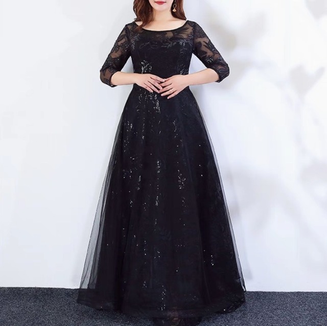 ドレス ワンピース パーティー 披露宴 演奏会 発表会 ステージ 舞台 フォーマル 衣装 演劇 ロング マキシ 7分袖 ボートネック フレア Aライン カクテル イブニング カジュアル レース 刺繍 ウエストマーク マタニティー スパンコール 可愛い きれいめ 大人可愛い 上品 おしゃれ クラシック 清楚 ゴージャス エレガント シック 華やか ナチュラル クラシカル 二の腕カバー 脚長 高見え 格上げ 光沢感 春 夏 秋 2XL 3XL 4XL 5XL 大きい ぽっちゃり XL 体型カバー 黒 ブラック