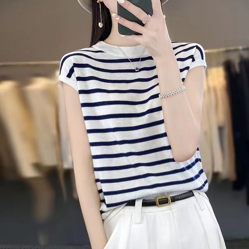 トップス 袖あり 半袖 フレンチスリーブ ラウンドネック 大人可愛い きれいめ シンプル カジュアル 大人 上品 おしゃれ お洒落 かっこいい 大人女子 こなれ感 エレガント ボーダー 春 夏 2023 10代 20代 30代 40代 レディース 女性用 OL 学生 通学 デート お出かけ 女子会 休日 アウトドア リゾート 旅行 普段使い 重ね着 ファッション コーデ スタイル 楽ちん S M L XL 2XL 白 ホワイト 青 ブルー