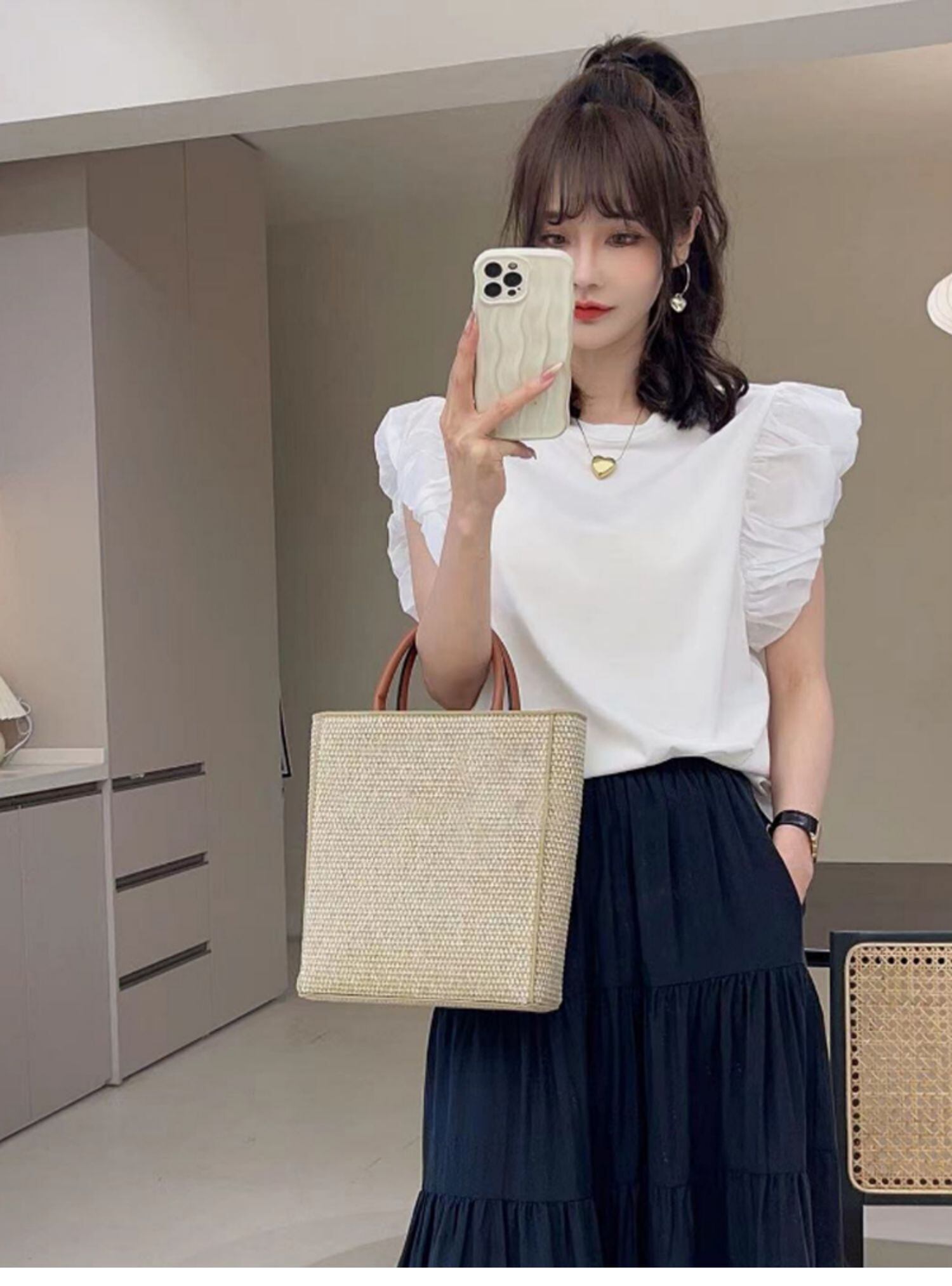 トップス ブラウス 袖あり ノースリーブ フレンチスリーブ ラウンドネック 大人可愛い 大人 上品 おしゃれ お洒落 大人女子 ラブリー キュート ガーリー エレガント 無地 春 夏 2023 10代 20代 30代 40代 レディース 女性用 キッズ 女の子 OL 学生 通学 デート お出かけ 女子会 休日 イベント リゾート 旅行 ホテル ガーデン レストラン 普段使い ファッション コーデ スタイル S M L XL 白 ホワイト 黒 ブラック