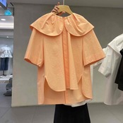 トップス シャツ ブラウス 袖あり 半袖 襟付き ビッグカラー 丸襟 快適 着心地 かわいい 大人可愛い きれいめ シンプル カジュアル 大人 上品 おしゃれ お洒落 かっこいい レトロ 大人女子 こなれ感 ラフ ラブリー キュート ガーリー ルーズ 個性的 クール セクシー モダン 存在感 シック 甘め 無地 レディース 女性用 デート お出かけ 女子会 休日 オルチャン ファッション コーデ スタイル 楽ちん モテ S M L XL 白 ホワイト 黒 ブラック オレンジ