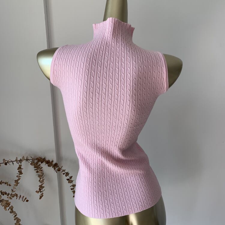 かわいいデザインでありながら大人の女性にも取り入れやすいノースリーブのリブニット。
