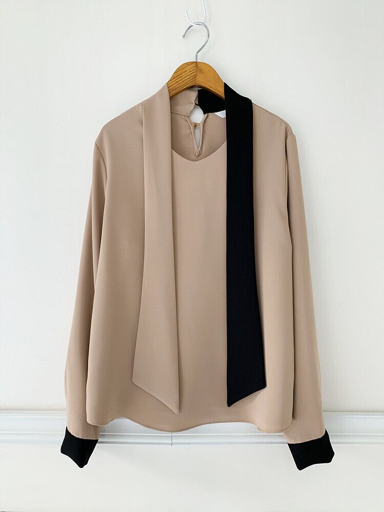 トップス シャツ 長袖 ラウンドネック ストレート Iライン シフォン リボン 切り替えデザイン 2way 透け感 薄手 大人可愛い きれいめ シンプル 大人 上品 おしゃれ お洒落 大人可愛い 大人女子 こなれ感 キュート クール エレガント 主役級 存在感 フォーマル とろみ感 抜け感 無地 春 夏 入学式 卒業式 20代 30代 40代 レディース 女性用 ママ OL 通勤 お出かけ イベント リクルート ホテル レストラン 着回し 普段使い モテ S M L XL ブラック ベージュ