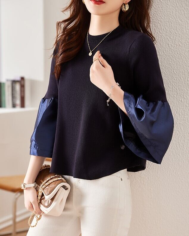 トランペットスリーブが可愛い、7分袖のレディーストップス。