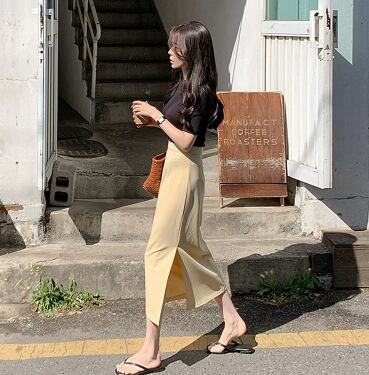 タイトスカート スリム ウエストマーク サイドスリット ウエストチャック ハイウエスト スカート ひざ丈 膝下 ミモレ丈 タイト 細身 ストレート 薄手 かわいい きれいめ シンプル 上品 おしゃれ レトロ クール セクシー フォーマル 無地 春 夏 秋 10代 20代 30代 レディース オフィス ビジネス OL デート 休日 パーティー ホテル レストラン 普段使い お揃い ファッション 楽ちん モテ トレンド S M L XL ぴったり ホワイト ブラック ブラウン イエロー 大人カラー