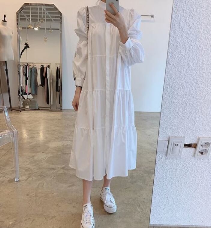 ワンピース デート モテアイテム シャツワンピース フリル 長袖 コットン フレア 大人可愛い きれいめ 上品 おしゃれ かっこいい 大人可愛い ラブリー キュート ガーリー クール モード系 セクシー エレガント 存在感 フォーマル レディース 学生 通学 デート お出かけ 公園デビュー 女子会 お泊まり 休日 運動 ショッピング 普段使い 双子 韓国系 オルチャン ファッション コーデ スタイル 美脚 脚長 トレンド 流行 インスタ映え フリー サイズ 大人カラー シックカラー