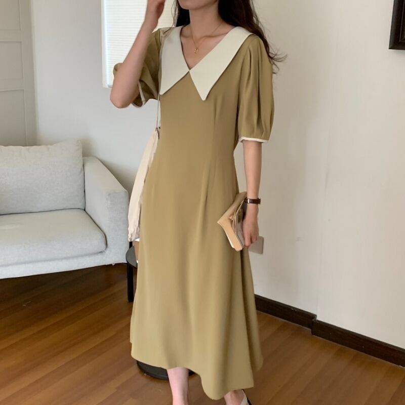 ワンピース デート モテアイテム 半袖 ミディアム丈 フレア 大人可愛い きれいめ 上品 おしゃれ かっこいい 大人可愛い ラブリー キュート ガーリー クール モード系 セクシー エレガント 存在感 フォーマル レディース 学生 通学 デート お出かけ 公園デビュー 女子会 お泊まり 休日 運動 ショッピング 普段使い 双子 韓国系 オルチャン ファッション コーデ スタイル 美脚 脚長 トレンド 流行 インスタ映え ワンサイズ カーキ ブラック