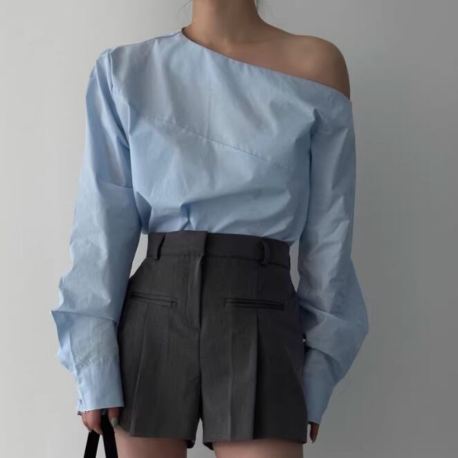 トップス シャツ カットソー プルオーバー 白シャツ 白トップス 袖あり 長袖 ラウンドネック オフショルダー ワンショル 襟なし アシンメトリー 大人可愛い きれいめ シンプル カジュアル 大人 上品 おしゃれ かっこいい 大人女子 こなれ感 キュート クール エレガント モダン 存在感 抜け感 無地 春 秋 誕生日 10代 20代 30代 40代 50代 レディース 女性用 ママ オフィス ビジネス OL 通勤 学生 通学 デート お出かけ 女子会 休日 旅行 高原 レストラン 着回し ホワイト
