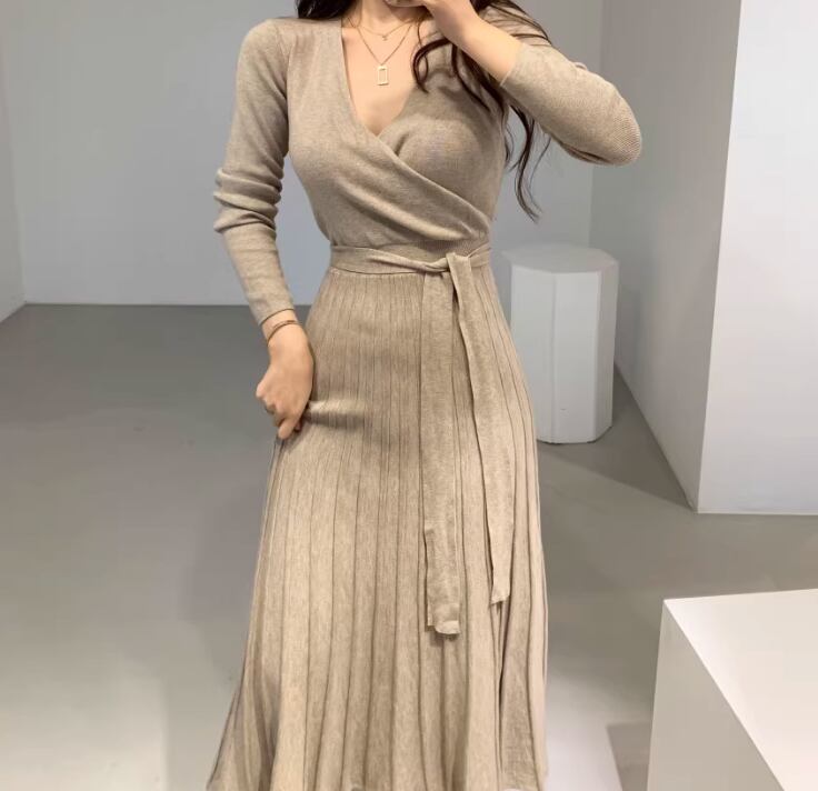 ワンピース プルオーバー フレアワンピース ミモレ丈 7分丈 袖あり 長袖 Vネック カシュクール 襟なし Aライン 伸縮性 プリーツ ウエストマーク ウエストリボン 切り替えデザイン ハイウエスト かわいい 大人可愛い きれいめ 大人 おしゃれ 大人女子 こなれ感 ラブリー キュート セクシー エレガント モダン 主役級 存在感 とろみ感 無地 秋 誕生日 10代 20代 30代 40代 レディース 女性用 ママ OL 通勤 学生 通学 デート お出かけ 休日 旅行 レストラン 脚長 ブラック カーキ