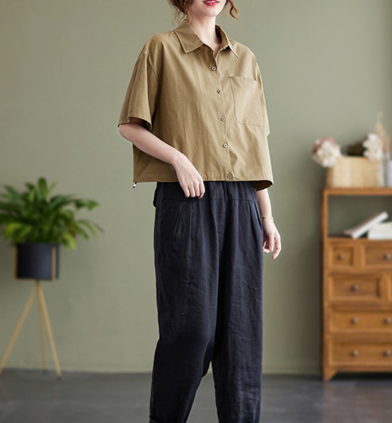 トップス デート モテアイテム シャツ 半袖 ショート丈 バルーン コットン 大人可愛い きれいめ 上品 おしゃれ かっこいい 大人可愛い ラブリー キュート ガーリー クール モード系 セクシー エレガント 存在感 フォーマル レディース 学生 通学 デート お出かけ 公園デビュー 女子会 お泊まり 休日 運動 ショッピング 普段使い 双子 韓国系 オルチャン ファッション コーデ スタイル 美脚 脚長 トレンド 流行 インスタ映え フリー サイズ 大人カラー シックカラー