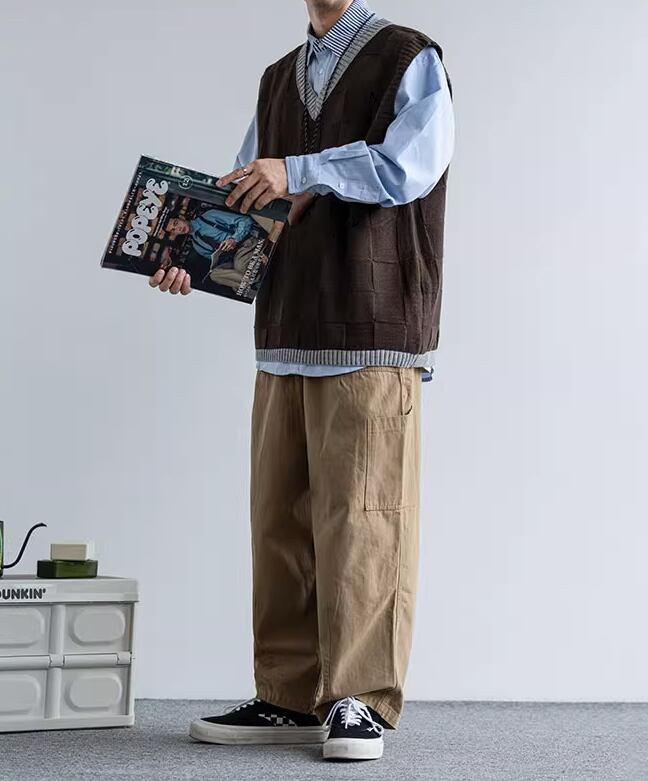 トップス ベスト 袖なし ノースリーブ Vネック 襟なし シンプル カジュアル 大人 おしゃれ お洒落 かっこいい レトロ アジアン エスニック エキゾチック こなれ感 ラフ メンズライク ボーイッシュ ルーズ 柄 格子柄 春 秋 20代 30代 40代 メンズ 男性用 ビジネス 通勤 デート お出かけ 公園デビュー 休日 旅行 ホテル ガーデン レストラン 着回し 普段使い 重ね着 楽ちん モテ サイズ M L XL 色展開 青 ブルー 茶色 ブラウン ベージュ 大人カラー カラバリ ベイクドカラー