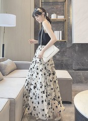スカート ロングスカート ミモレ ミモレ丈 ロング ロング丈 マキシ マキシ丈 袖あり 長袖 スクエアネック Aライン ハイウエスト ウエストゴム メッシュ 薄手 快適 着心地 かわいい 大人可愛い きれいめ シンプル カジュアル 大人 上品 おしゃれ お洒落 大人女子 こなれ感 ラフ ラブリー キュート ガーリー ルーズ 個性的 エレガント 甘め フェアリー 華やか フェミニン 花柄 小花柄 レディース 女性用 デート お出かけ 休日 ファッション 楽ちん モテ 白 ホワイト 黒 ブラック オフホワイト