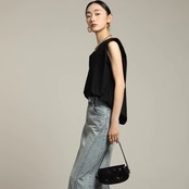 袖なしのシンプルなデザインと、上品なノースリーブのカジュアルさが魅力のトップス。