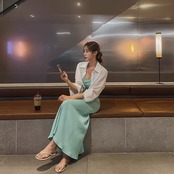 ロング丈でセミフレアのシルエットが女性らしく、ヒップラインから広がるマーメイドデザインで存在感も抜群の1着です。