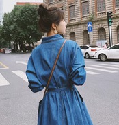 ロング丈のデニムワンピース。