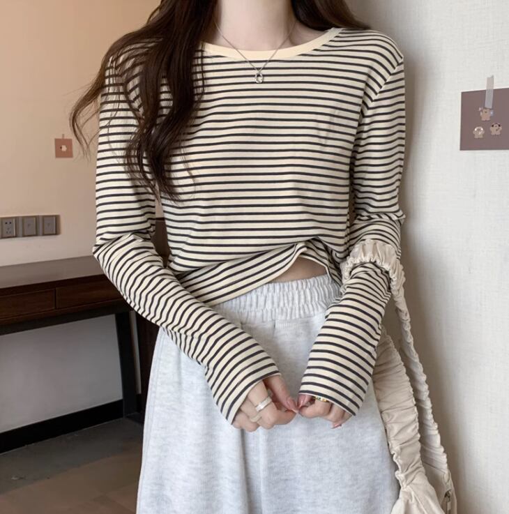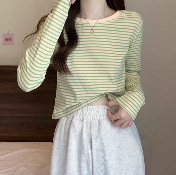 トップス Tシャツ 袖あり 長袖 ラウンドネック 襟なし 薄手 かわいい 大人可愛い シンプル カジュアル 大人 おしゃれ お洒落 レトロ アジアン エスニック エキゾチック 大人女子 柄 ストライプ 春 秋 冬 10代 20代 レディース 女性用 通勤 デート お出かけ 公園デビュー 女子会 お泊まり 休日 旅行 ガーデン レストラン 着回し 普段使い 重ね着 モテ サイズ フリーサイズ 色展開 黒 ブラック 緑 グリーン 茶色 ブラウン ピンク くすみカラー 春カラー 秋カラー カラバリ