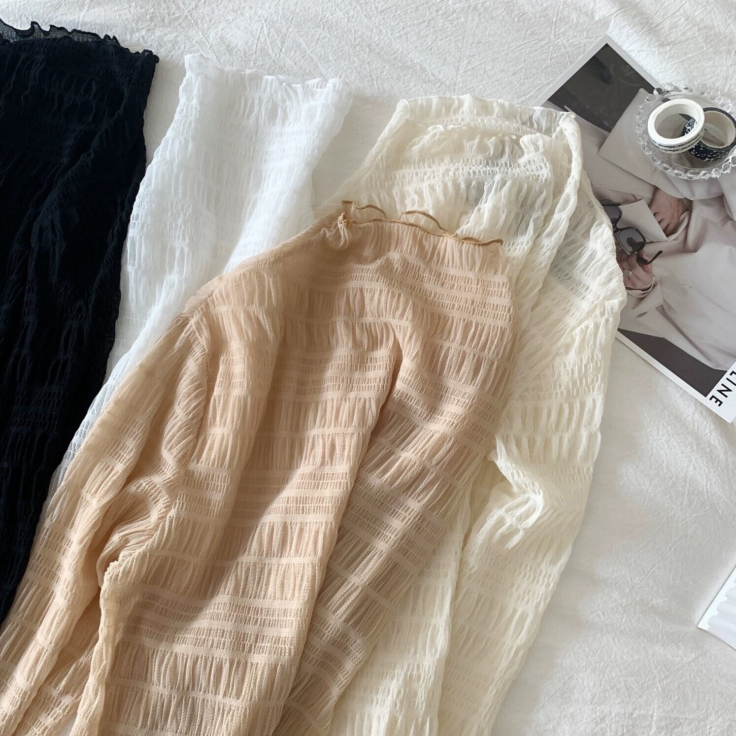 トップス カットソー 長袖 ハイネック ストレート Iライン シフォン フリル 透け感 シースルー 薄手 かわいい 大人可愛い きれいめ カジュアル 大人 上品 おしゃれ お洒落 エキゾチック 大人可愛い 大人女子 こなれ感 ラブリー キュート ガーリー 個性的 エレガント 存在感 とろみ感 抜け感 春 夏 10代 20代 30代 40代 レディース 女性用 学生 デート お出かけ 女子会 休日 イベント 旅行 レストラン 着回し 重ね着 モテ フリーサイズ ホワイト ブラック ブラウン アプリコット