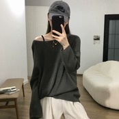 ドロップショルダーのゆるいシルエットが大人可愛い長袖ニットトップスです。