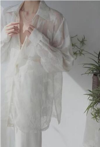 トップス シャツ ブラウス 白シャツ 白トップス 長袖 ドロップショルダー 萌袖 襟付き ワイド 前開き 透け感 シースルー シアー 大人可愛い きれいめ シンプル カジュアル おしゃれ お洒落 大人女子 こなれ感 ラフ 主役級 存在感 抜け感 花柄 フラワー 春 秋 20代 30代 40代 50代 60代 レディース 女性用 デート お出かけ 女子会 休日 イベント リゾート 旅行 ホテル レストラン 着回し 普段使い 重ね着 韓国系 オルチャン ファッション 体系カバー S M L ホワイト