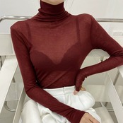 トップス カットソー 長袖 ハイネック タートルネック ストレート Iライン スマート 透け感 シースルー 薄手 大人可愛い きれいめ シンプル カジュアル 大人 上品 おしゃれ お洒落 エキゾチック 大人可愛い 大人女子 こなれ感 ラフ ラブリー キュート ガーリー 個性的 セクシー エレガント 存在感 とろみ感 抜け感 無地 秋 冬 10代 20代 30代 40代 レディース 女性用 女の子 学生 デート お出かけ 女子会 旅行 レストラン 着回し 普段使い 重ね着 モテ S M L カラバリ
