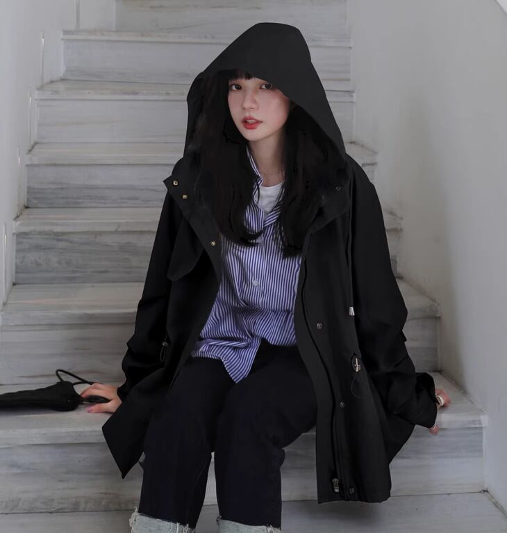 アウター ウインドブレーカー レインコート ジャケット 袖あり 長袖 襟なし フード付き ファスナー 前開き ポリエステル かわいい 大人可愛い シンプル カジュアル 大人 おしゃれ お洒落 アジアン エスニック エキゾチック 大人女子 無地 春 秋 10代 20代 レディース 女性用 通勤 デート お出かけ 公園デビュー 女子会 休日 旅行 高原 ガーデン レストラン 着回し 普段使い 重ね着 モテ サイズ S M 色展開 黒 ブラック 大人カラー 秋カラー