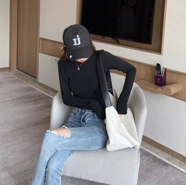 トップス カットソー プルオーバー ロングTシャツ 袖あり 長袖 萌袖 ラウンドネック 襟なし スリム バックシャン バックコンシャス 伸縮性 ポリエステル かわいい 大人可愛い きれいめ 大人 上品 おしゃれ かっこいい レトロ 大人女子 こなれ感 キュート クール セクシー エレガント モダン 主役級 存在感 抜け感 無地 春 秋 誕生日 ハロウィン 10代 20代 30代 40代 レディース 女性用 ママ OL 学生 通学 デート お出かけ 休日 イベント 旅行 オルチャン スタイル モテ ブラック