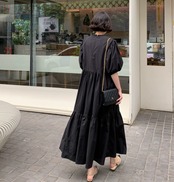 ワンピース パフスリーブ 5分丈 運動 フレアワンピース マキシ丈 5分袖 Uネック スリム 細身 ストレート Aライン スマート シフォン フリル かわいい きれいめ シンプル カジュアル 大人 おしゃれ こなれ感 ラフ ルーズ 抜け感 無地 春 夏 秋 10代 20代 レディース ママ デート お出かけ 公園デビュー 女子会 お泊まり 休日 リゾート 旅行 普段使い スタイル モテ 体系カバー 二の腕カバー インスタ映え ゆる トレンド S M L XL ブラック モノトーン 大人カラー