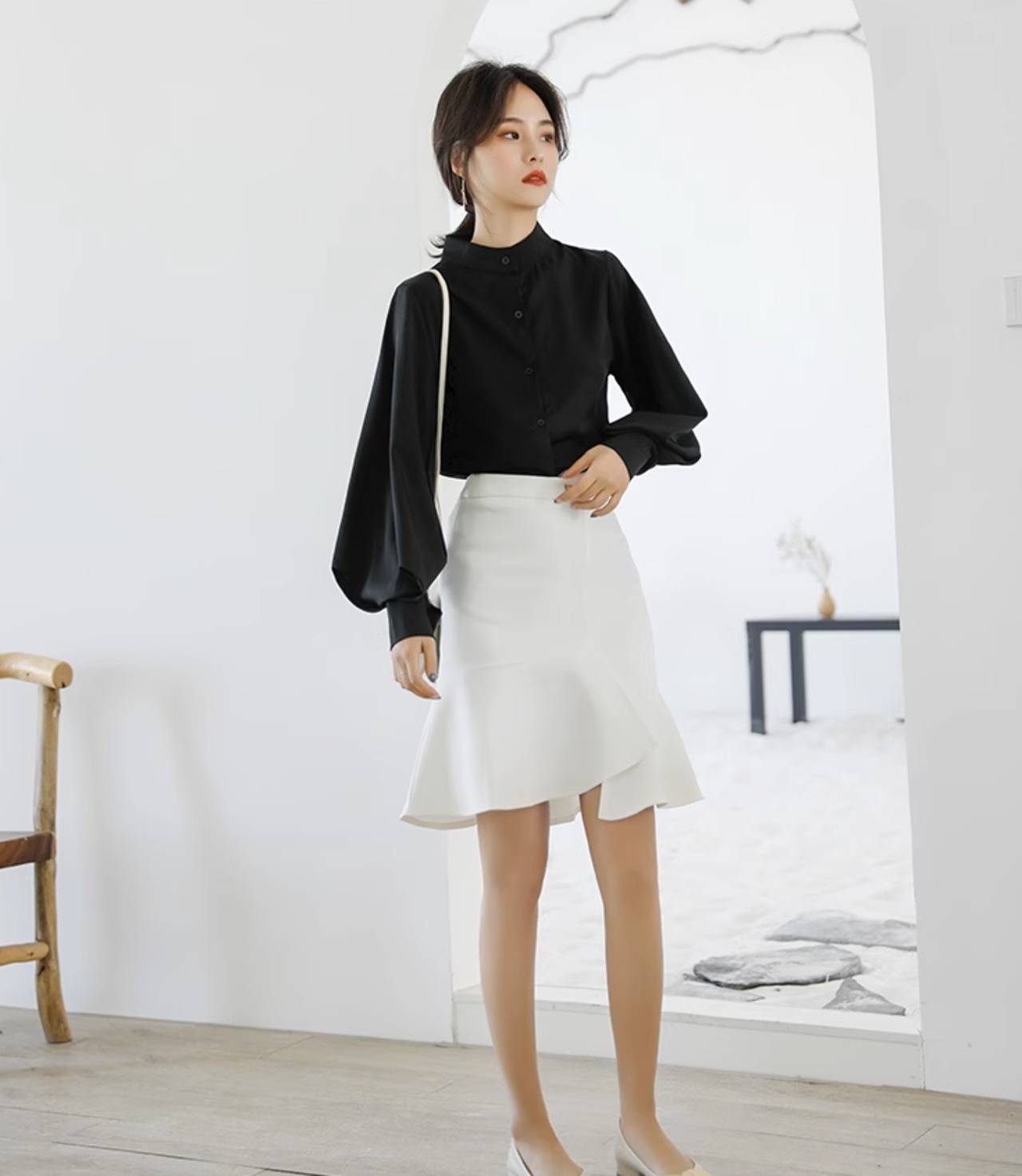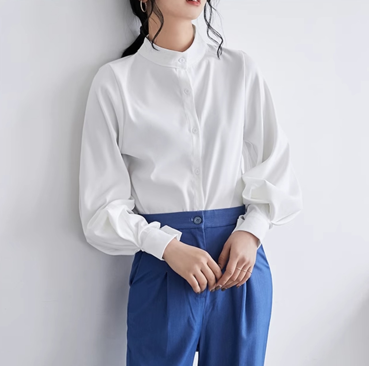 トップス シャツ 白シャツ 白トップス 袖あり 長袖 萌袖 襟なし スタンドカラー 前開き かわいい 大人可愛い きれいめ シンプル 大人 上品 おしゃれ お洒落 アジアン エスニック エキゾチック 大人女子 こなれ感 無地 春 秋 20代 30代 レディース 女性用 OL 通勤 デート お出かけ 公園デビュー 女子会 休日 旅行 ガーデン レストラン 着回し 普段使い モテ サイズ S M L XL 色展開 白 ホワイト 黒 ブラック 青 ブルー ベージュ 秋カラー くすみカラー カラバリ