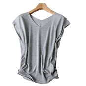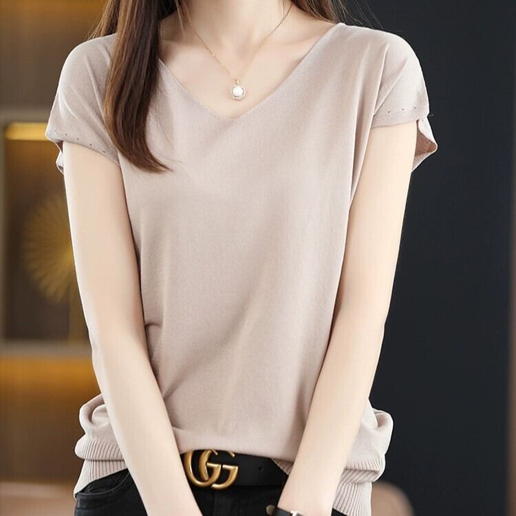 カラーバリエーションの豊富なVネックの半袖トップスです。