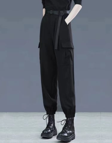 フラップ付きのミリタリーポケットがアクセントのハイウエストカーゴパンツ。