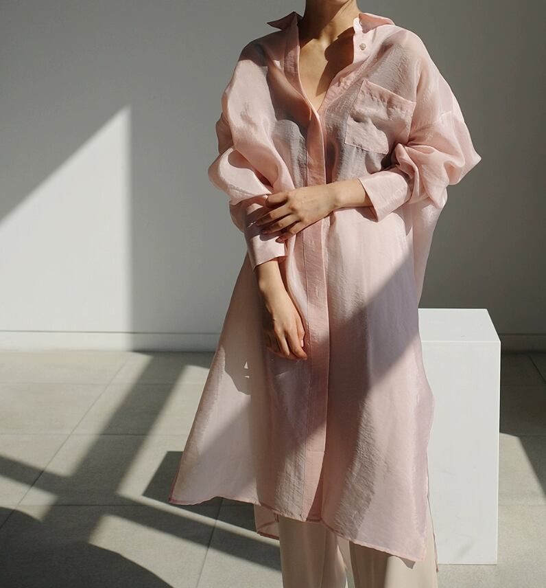 シアーシャツ ロングシャツ さらさら 透け感 薄手 ポケットあり トップス シャツ ロング丈 長袖 襟付き 角襟 スリム タイト 細身 ストレート サイドスリット 前開き シースルー かわいい 大人可愛い シンプル カジュアル 大人 おしゃれ こなれ感 ラフ ルーズ とろみ感 抜け感 無地 春 夏 秋 10代 20代 レディース ママ デート お出かけ 公園デビュー 女子会 休日 リゾート ガーデン 着回し 普段使い 楽ちん モテ 体系カバー 定番 S M L XL ゆったり ブラック ピンク