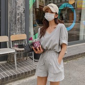 さまざまなスタイルに合わせられるトップスとショートパンツの2点セット。