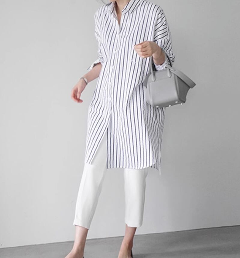 トップス デート モテアイテム シャツ ルーズ ストライプ柄 コットン 大人可愛い きれいめ 上品 おしゃれ かっこいい 大人可愛い ラブリー キュート ガーリー クール モード系 セクシー エレガント 存在感 フォーマル レディース 学生 通学 デート お出かけ 公園デビュー 女子会 お泊まり 休日 運動 ショッピング 普段使い 双子 韓国系 オルチャン ファッション コーデ スタイル 美脚 脚長 トレンド 流行 インスタ映え S M L XL 2XL サイズ
