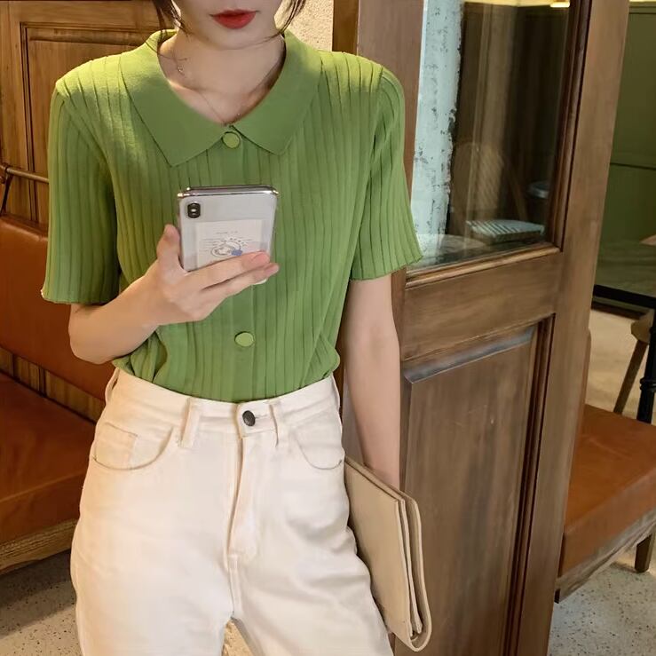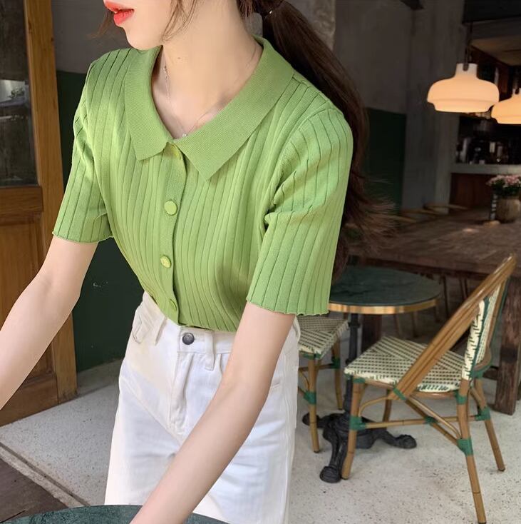 トップス ニットソー 袖あり 半袖 Vネック 襟付き POLOカラー 前開き サマーニット かわいい 大人可愛い きれいめ シンプル 大人 上品 おしゃれ レトロ 大人女子 こなれ感 キュート ガーリー エレガント モダン 存在感 とろみ感 無地 夏 誕生日 10代 20代 30代 40代 レディース 女性用 ママ OL 通勤 学生 通学 デート お出かけ 公園デビュー 休日 イベント リゾート 旅行 レストラン 着回し オルチャン コーデ トレンド 色展開 ホワイト ブラック グリーン ピンク