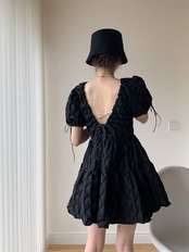 ワンピース ドレス 半袖 ショート丈 背中開き パフスリーブドレス ふわふわ ハイウエスト チュチュスカート プルオーバー かわいい 大人可愛い きれいめ シンプル カジュアル 大人 上品 おしゃれ お洒落 レトロ 大人女子 こなれ感 ラフ ラブリー キュート ガーリー 個性的 モード系 セクシー エレガント モダン 主役級 存在感 無地 春 夏 10代 20代 レディース 女性用 デート お出かけ 女子会 休日 パーティー イベント ショッピング モテ 普段使い ファッション ワンサイズ ブラック