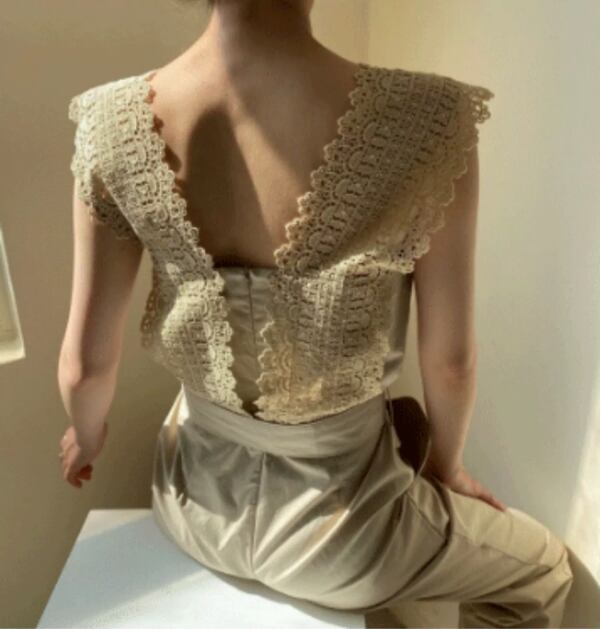 すっきりとしたVネックとバックスタイルのV開きで大人っぽく肌見せ。