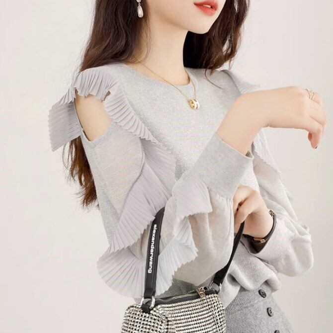 トップス カットソー プルオーバー 袖あり 長袖 ラウンドネック プリーツ オープンショルダー かわいい 大人可愛い きれいめ 大人 上品 おしゃれ 大人女子 こなれ感 ラブリー キュート 個性的 エレガント モダン 主役級 存在感 とろみ感 無地 秋 誕生日 ハロウィン 10代 20代 30代 40代 レディース 女性用 ママ OL 通勤 学生 通学 デート お出かけ 休日 イベント 旅行 着回し オルチャン ファッション コーデ スタイル トレンド インスタ映え M L XL 2XL ブラック グレー