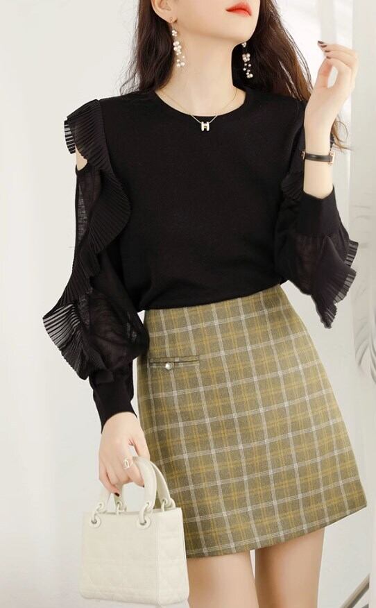 こちらのカットソー は、オープンショルダーと袖プリーツのデザインが特徴の、大人可愛いトップスです。