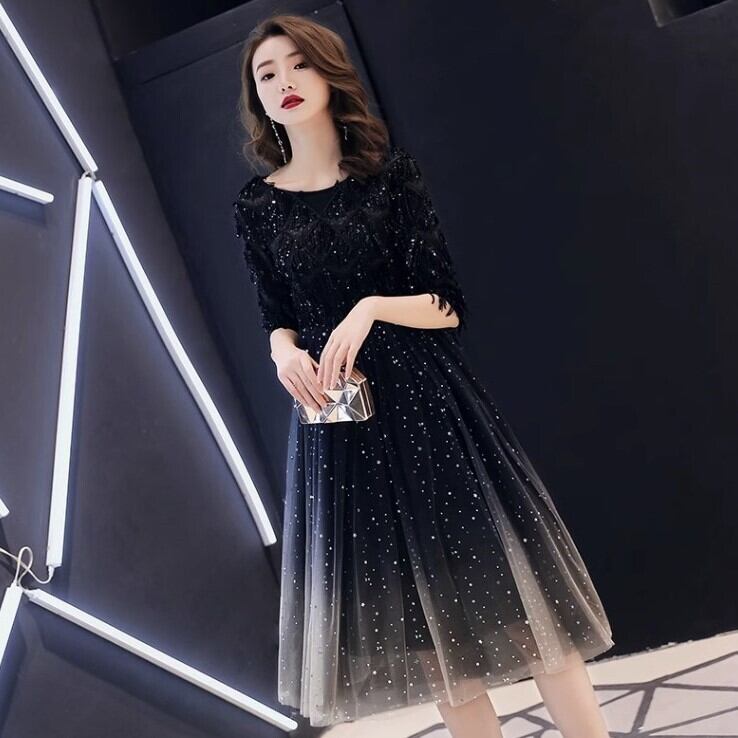 ドレス パーティードレス イブニングドレス ミモレ丈 5分袖 パフスリーブ Vネック ラウンドネック 襟なし Aライン 切り替えデザイン 刺繍 シフォン ウエストマーク 大人可愛い きれいめ 大人 上品 お洒落 大人女子 キュート 個性的 クール エレガント 主役級 ゴージャス 華やか お嬢様 ドット柄 10代 20代 30代 40代 レディース ママ 女子会 パーティー イベント ホテル ガーデン レストラン インスタ映え シーズンレス 結婚式 披露宴 演奏会 発表会 大きいサイズ ブラック クラレット