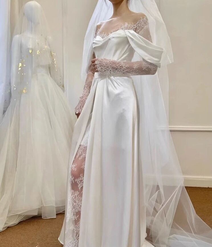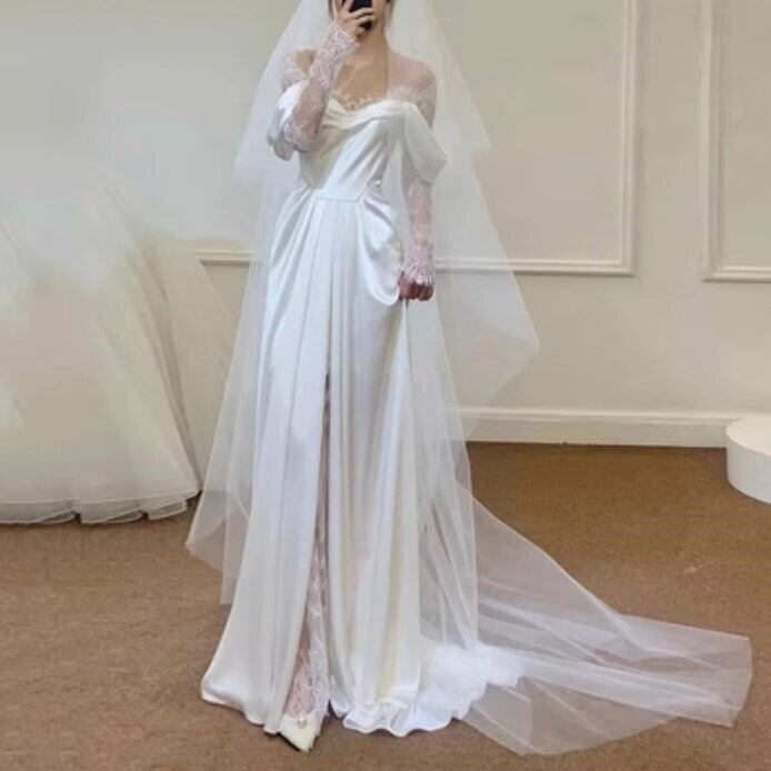 ドレス ウェディングドレス ミニ丈 ロング丈 袖あり 長袖 ワンショルダー プリンセスライン 切り替えデザイン ドッキング レース ウエストマーク バックシャン 透け感 大人可愛い きれいめ 大人 上品 大人女子 個性的 クール エレガント 主役級 フォーマル ゴージャス 華やか 無地 10代 20代 30代 40代 レディース パーティー イベント ホテル ガーデン レストラン 二の腕カバー インスタ映え シーズンレス ウェディング 結婚式 2次会 披露宴 挙式 海外挙式 前撮り 後撮り S M L
