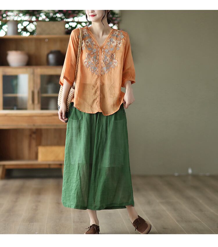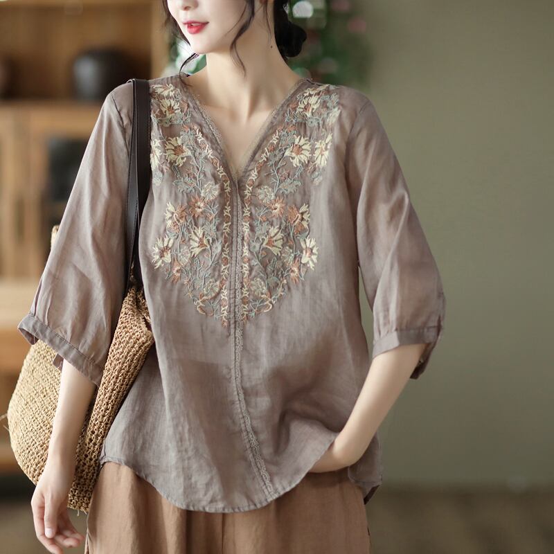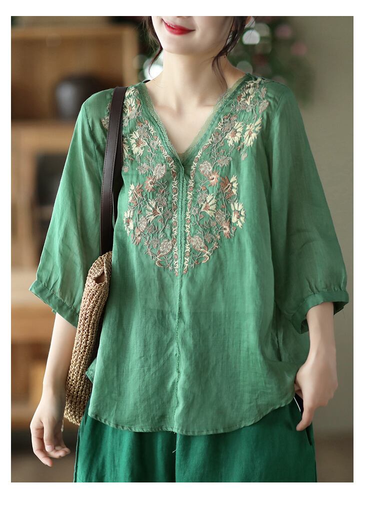 トップス ブラウス プルオーバー 白トップス 7分袖 七分袖 Vネック ワイド 刺繍 透け感 綿 麻 コットン リネン コットンリネン 大人可愛い きれいめ シンプル カジュアル おしゃれ お洒落 アジアン エスニック 大人女子 こなれ感 主役級 存在感 抜け感 無地 柄 花柄 フラワー 夏 20代 30代 40代 50代 60代 レディース 女性用 デート お出かけ 女子会 休日 リゾート 旅行 着回し 普段使い フリーサイズ ワンサイズ