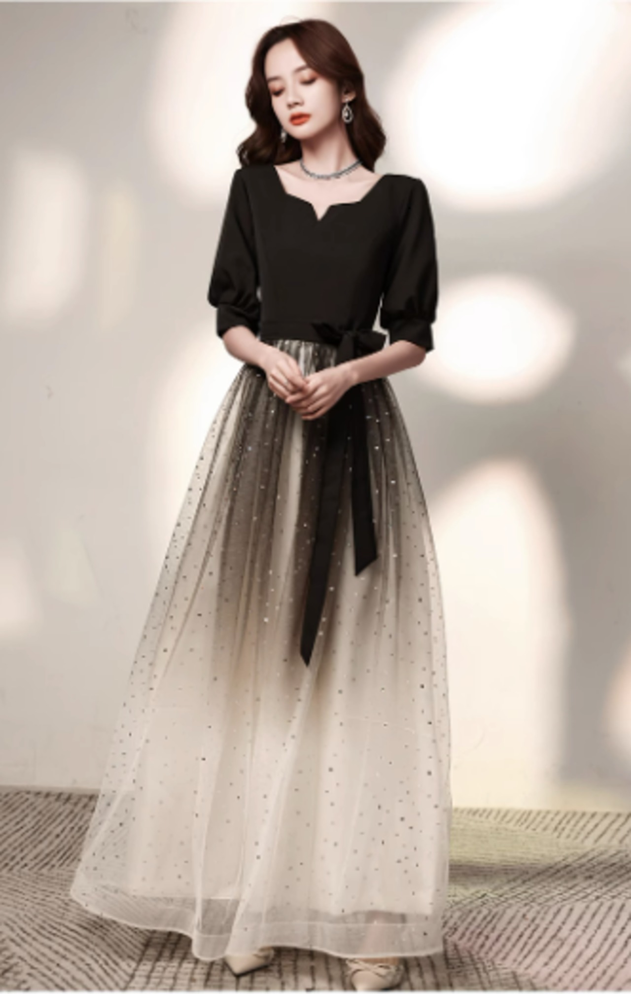 グラデーション イブニングドレス ハイエンド ワンピース 袖あり 5分袖 五分袖 Vネック フレア Aライン レース ウエストマーク ウエストリボン 快適 着心地 大人可愛い きれいめ 大人 上品 おしゃれ お洒落 ラブリー ルーズ 個性的 セクシー エレガント 主役級 存在感 シック 甘め フェアリー 華やか フェミニン 可憐 結婚式 二次会 披露宴 レディース 女性用 デート お出かけ 女子会 休日 パーティー イベント ファッション コーデ スタイル モテ S M L XL 黒 ブラック ラメ