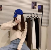 Vネックが女性らしい、シンプルながらも大人可愛いトップス。