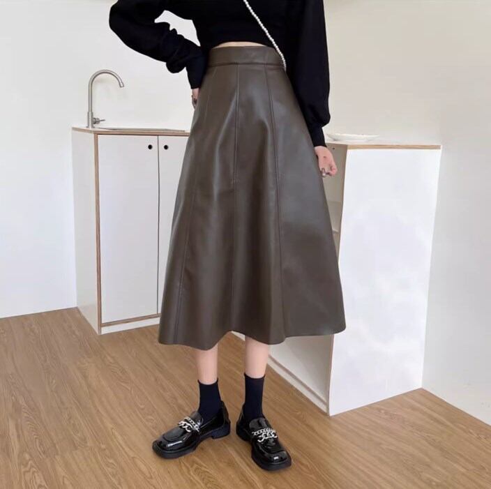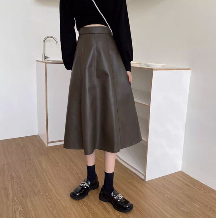 スカート ミモレ丈 Aライン ハイウエスト レザー 大人可愛い シンプル 大人 上品 おしゃれ お洒落 レトロ 大人女子 こなれ感 キュート 個性的 クール エレガント モダン 主役級 存在感 抜け感 無地 春 秋 10代 20代 30代 40代 50代 レディース 女性用 ママ OL 通勤 学生 通学 デート お出かけ 休日 イベント 旅行 レストラン 着回し オルチャン コーデ スタイル ファッション トレンド S M L XL 小さいサイズ プチサイズ ショートサイズ ブラック コーヒー