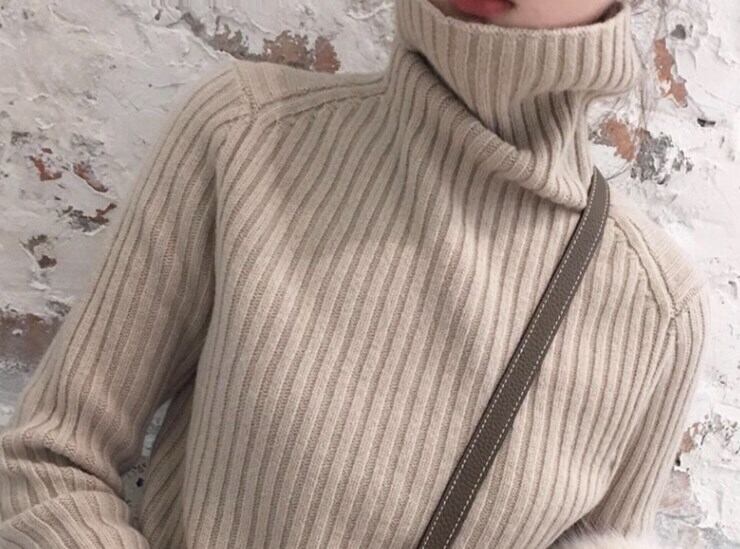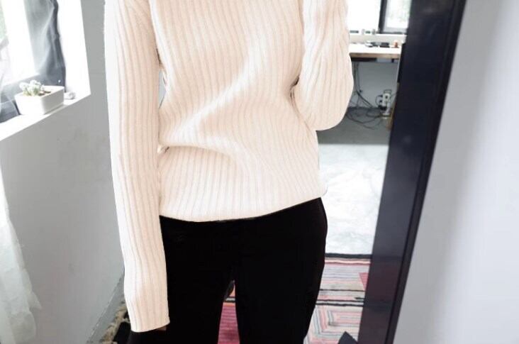 モダンで上品な雰囲気のハーフタートルネックセーターです。