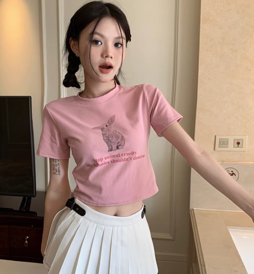 トップス デート モテアイテム カットソー 半袖 Tシャツ うさぎ コットン 大人可愛い きれいめ 上品 おしゃれ かっこいい 大人可愛い ラブリー キュート ガーリー クール モード系 セクシー エレガント 存在感 フォーマル レディース 学生 通学 デート お出かけ 公園デビュー 女子会 お泊まり 休日 運動 ショッピング 普段使い 双子 韓国系 オルチャン ファッション コーデ スタイル 美脚 脚長 トレンド 流行 インスタ映え S M L 大人カラー サイズ くすみカラー