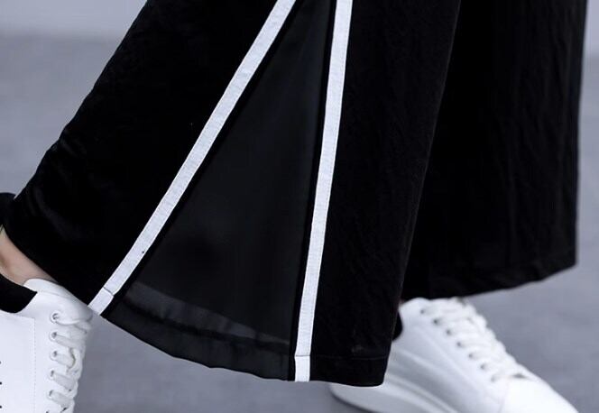 トレンドのワイドレッグパンツに、カジュアルなTシャツがセットになっています。