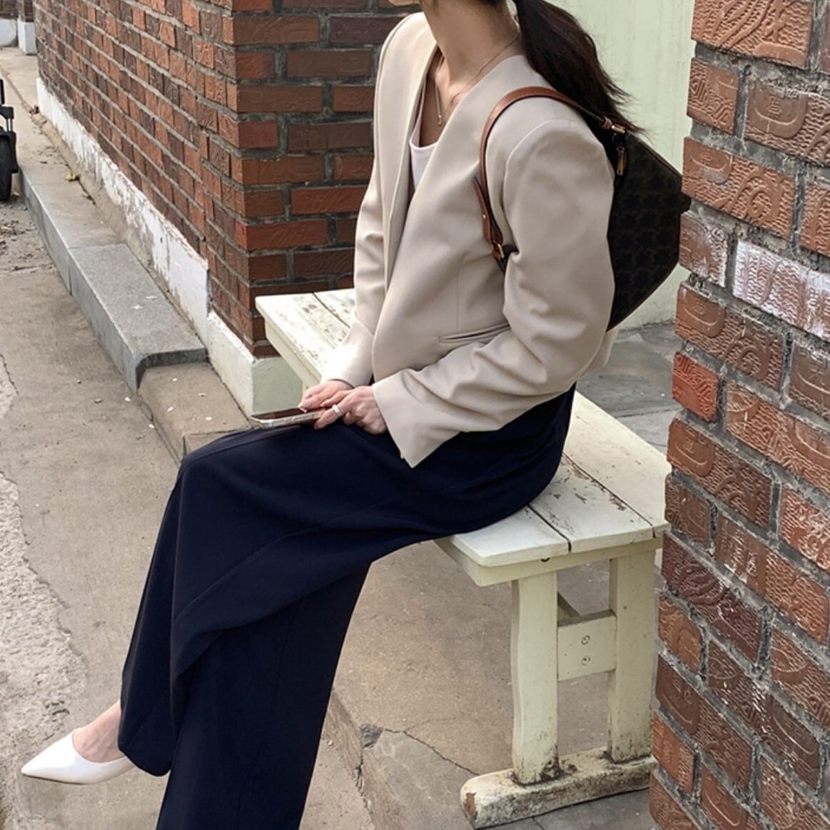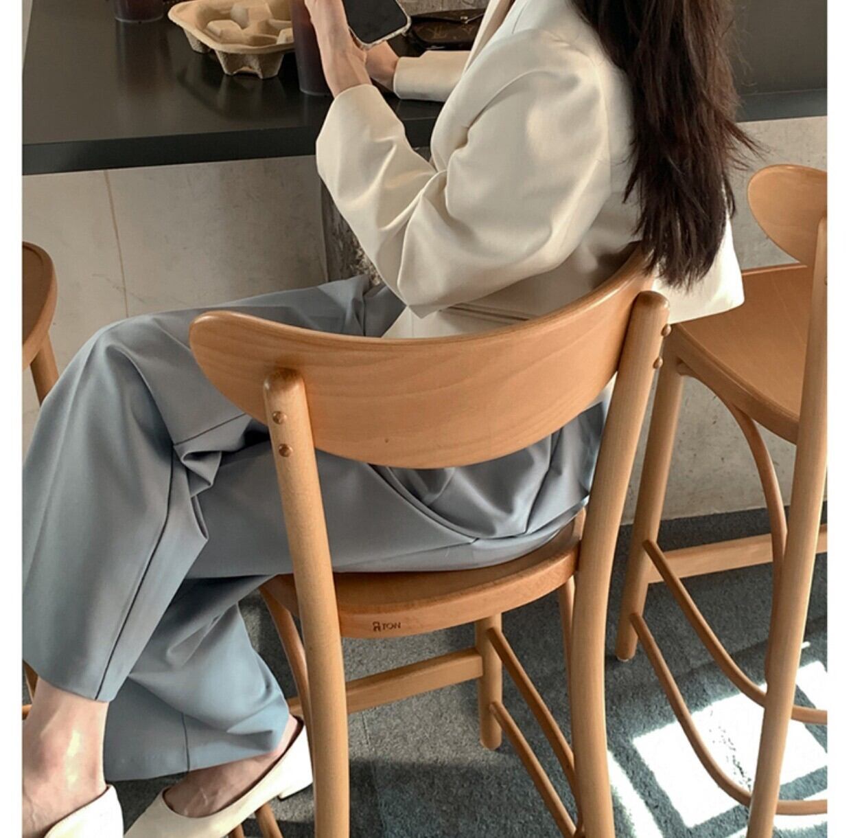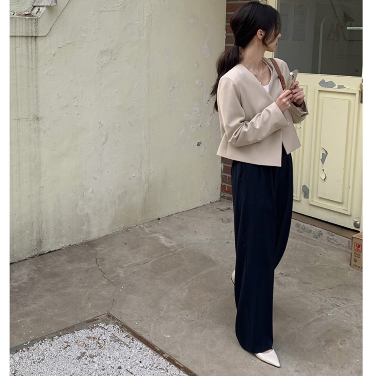 スーツ 上下セット 2点セット ジャケット ノーカラー Vネック 長袖 ショート丈 スラックス ズボン ボトムス ゆったり 大人可愛い きれいめ シンプル カジュアル 大人 上品 おしゃれ お洒落 かっこいい レトロ 大人女子 こなれ感 ラフ ラブリー キュート ガーリー 個性的 モード系 セクシー エレガント モダン 主役級 存在感 無地 春 夏 10代 20代 30代 40代 レディース 女性用 ビジネス OL 通勤 モテ 着回し ファッション ワンサイズ ベージュ&ブルー アプリコット&ブラック