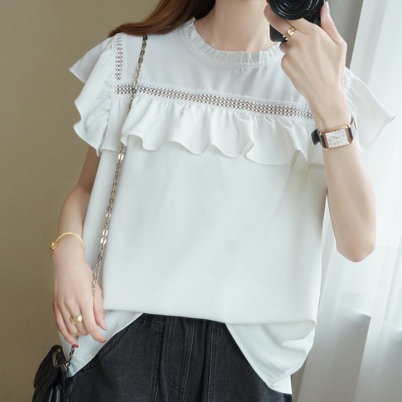 トップス ブラウス プルオーバー 白トップス 半袖 フレアスリーブ クルーネック 襟なし ワイド フリル かわいい 大人可愛い シンプル カジュアル おしゃれ お洒落 大人女子 こなれ感 ラフ ガーリー 主役級 存在感 抜け感 無地 春 夏 10代 20代 30代 レディース 女性用 デート お出かけ 女子会 休日 リゾート 旅行 海 プール 着回し 普段使い 韓国系 オルチャン ファッション コーデ スタイル サイズ S M L XL 2XL 色展開 白 ホワイト
