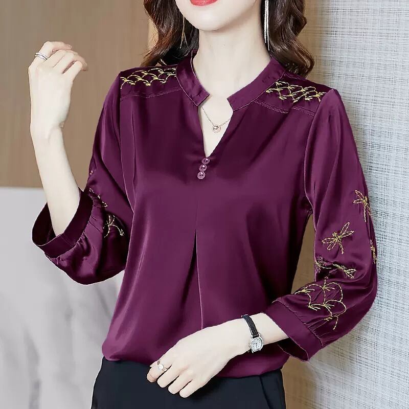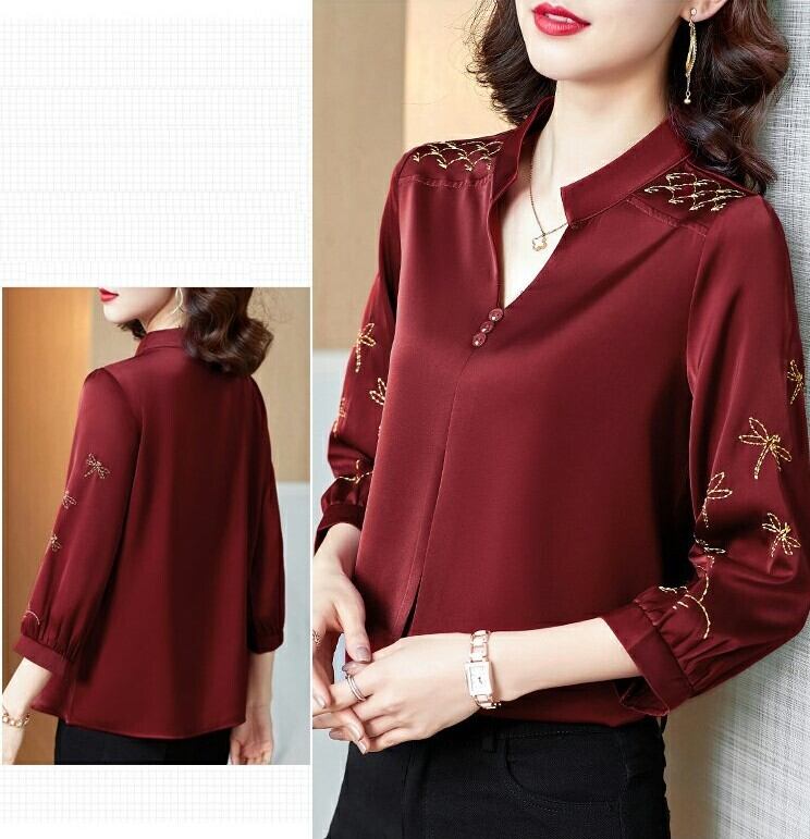 トップス シャツ ブラウス プルオーバー 7分袖 七分袖 Vネック キーネック 襟なし 落ち感 ストレート 刺繍 大人可愛い きれいめ カジュアル おしゃれ お洒落 大人女子 こなれ感 主役級 存在感 抜け感 無地 柄 春 秋 20代 30代 40代 50代 60代 レディース 女性用 デート お出かけ 女子会 休日 着回し 普段使い 韓国系 オルチャン ファッション コーデ スタイル M L XL 2XL 3XL 4XL ワインレッド グリーン ブルー ブラック ピンク パープル
